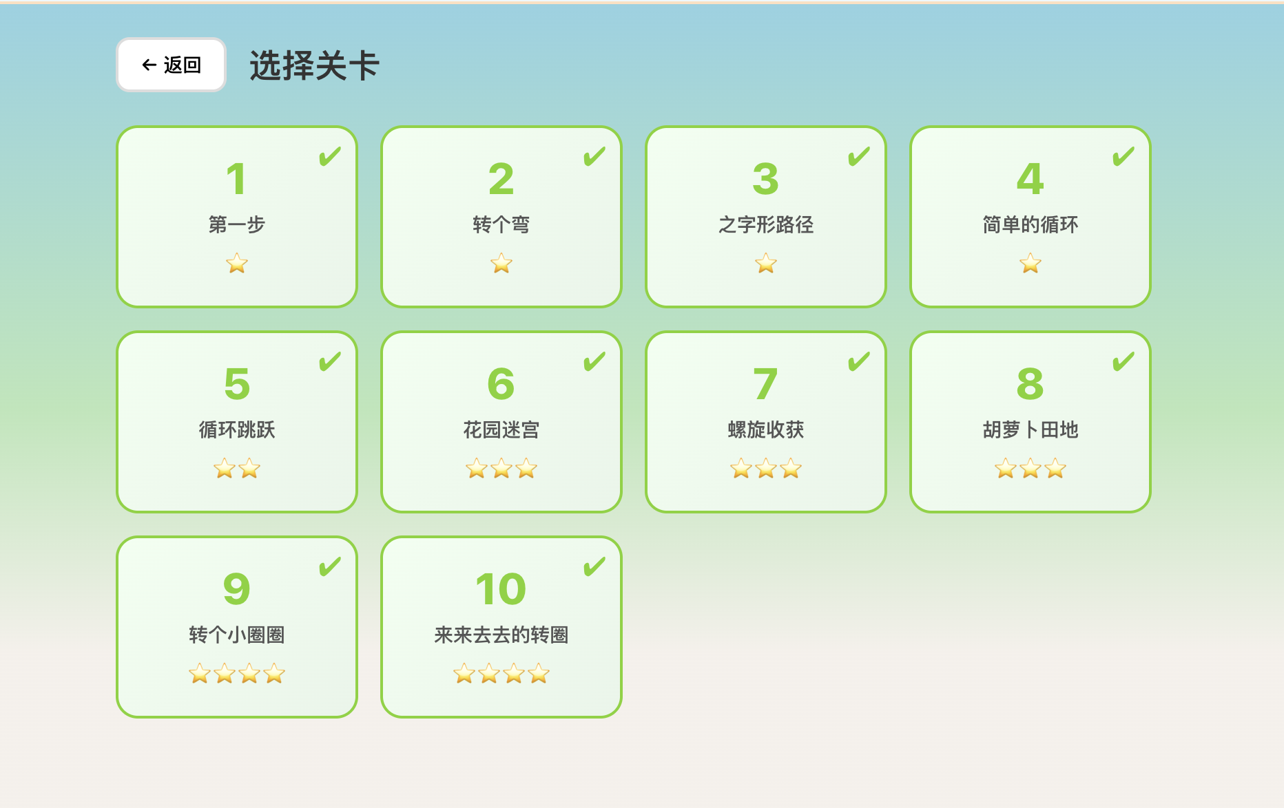 oser OP @bixinhaner 哈哈,还行,可以理解循环,可以玩到第 5 关,第 6 关我还在教,慢慢来,还是要教一下才能理解